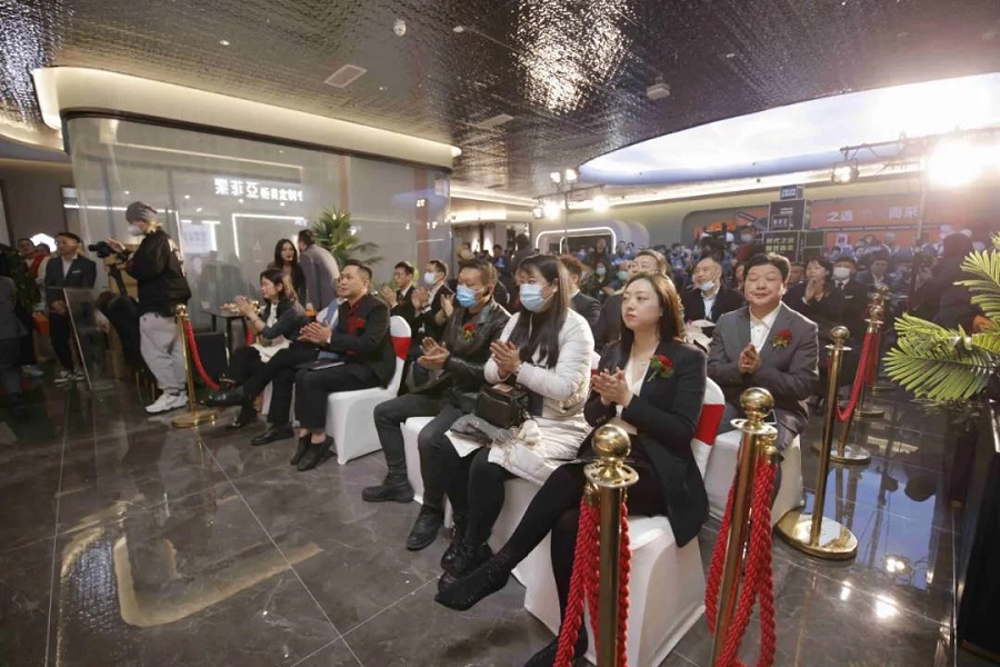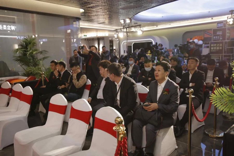 舞獅隊(duì)離場后,集團(tuán)董事長溫正勇先生、首席運(yùn)營官張蓉鷹女士及裝飾協(xié)會(huì)代表分別上臺(tái)致辭。