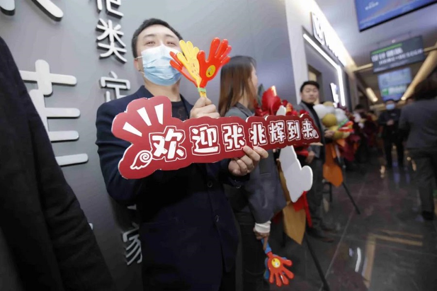 上午10點(diǎn)30分,在樂隊(duì)的歌唱中,南宅美居集團(tuán)總部的走廊上擠滿了公司員工,“顧盼生輝”“與輝同在”,大家紛紛拿著應(yīng)援燈,緊張而又興奮的等待張兆輝先生的到來。在保安的保護(hù)下,張兆輝先生一襲黑衣從電梯間緩緩走來與大家揮手,霎時(shí)間,掌聲如雷,歡呼沸騰。歲月在生活中留下了印記,而眼前的人依舊還是腦海中那個(gè)風(fēng)流倜儻的少年郎。